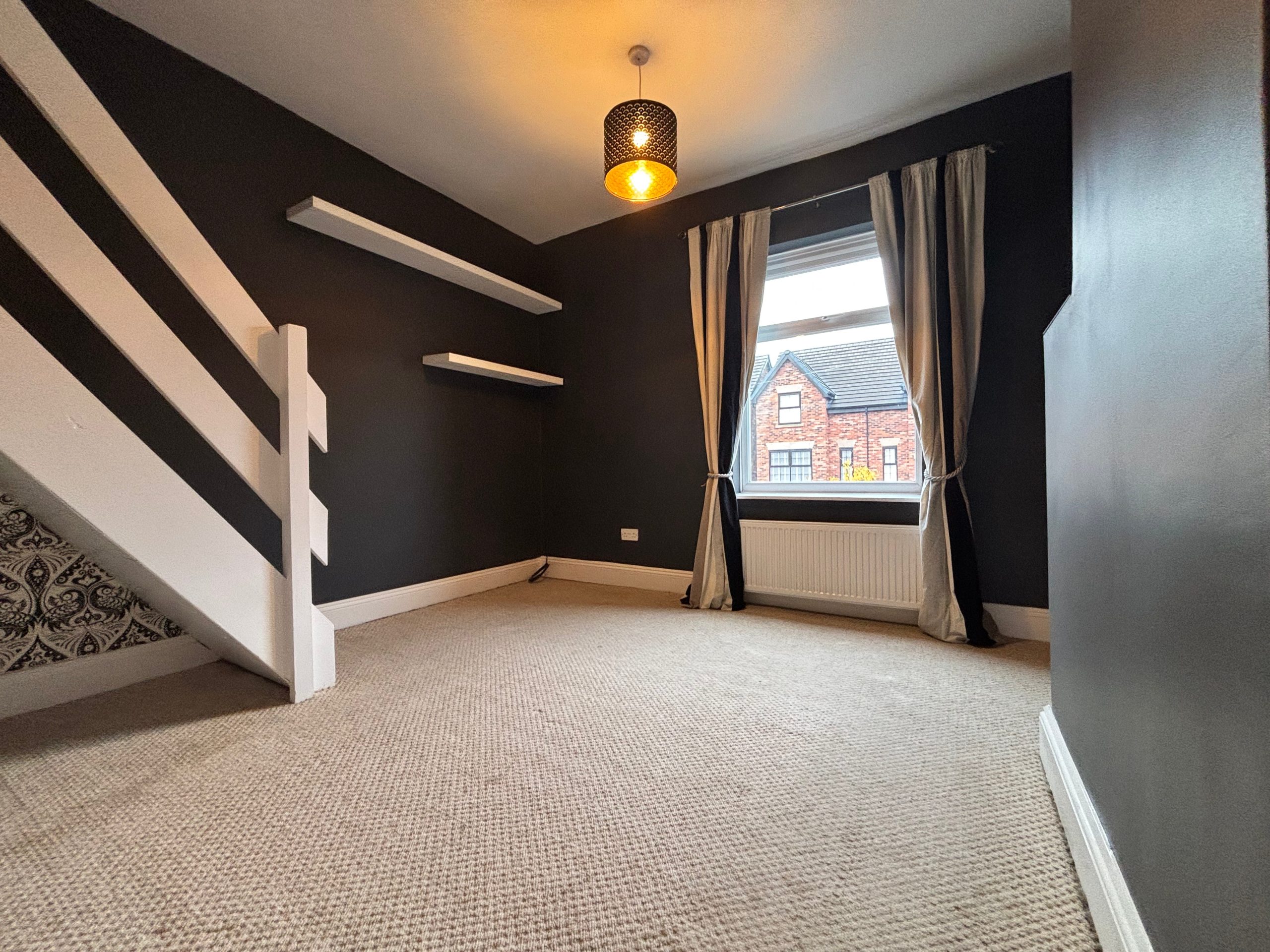 Larger double bedroom to front of property with stairs leading into