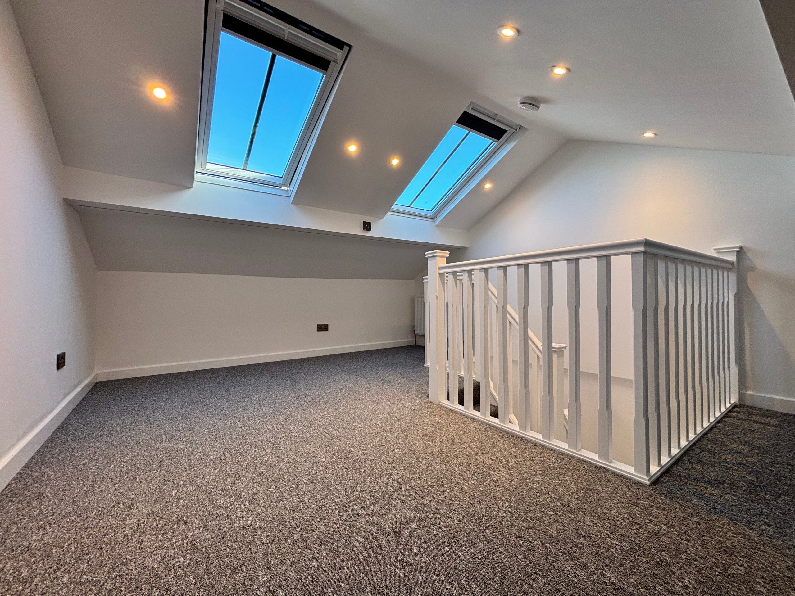 Attic room with two large vellum windows and more storage