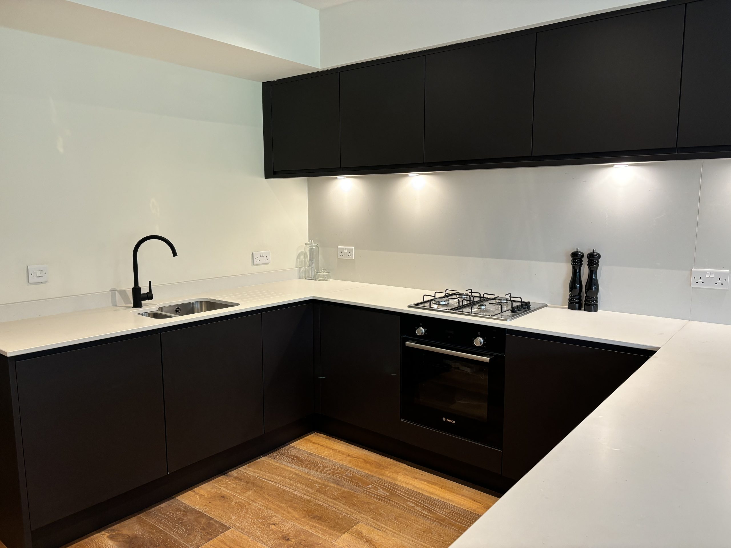 Beautifully renovated three bedroom ground floor apartment with all modern fittings, including one parking bay with EV charging point