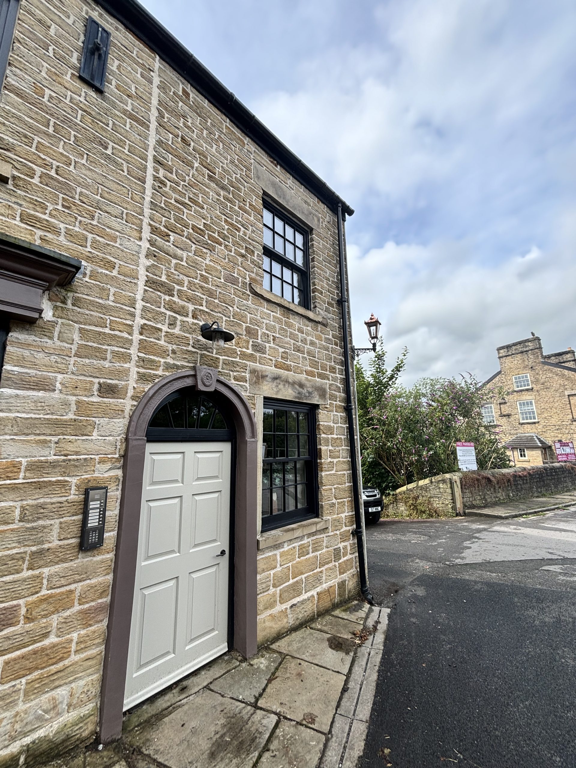 Secure entry to the building from front and back, one parking bay with EV charger